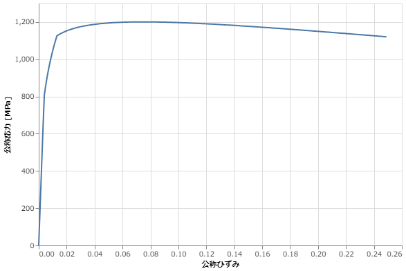 公称応力、公称ひずみを示す座標データ。